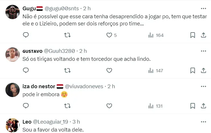 Por outro lado, o tema do momento no Clube é Jhegson Méndez. O volante estava emprestado ao Elche, da Espanha. Porém, o desempenho foi abaixo do esperado e ele retornará ao Morumbis, onde tem contrato até 2025.