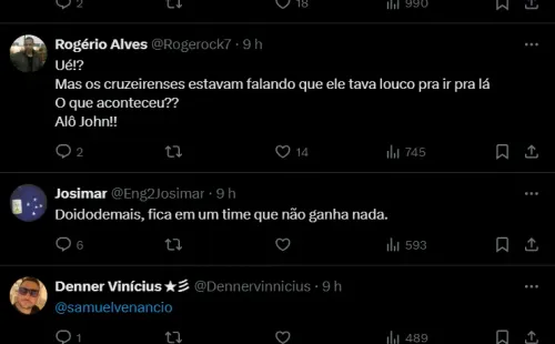 “Fico feliz do Cruzeiro ter me procurado, é uma grande equipe, mas eu tô feliz aqui e quero fazer o melhor ao Botafogo. Espero renovar o contrato, alô John!”, disse o atacante.