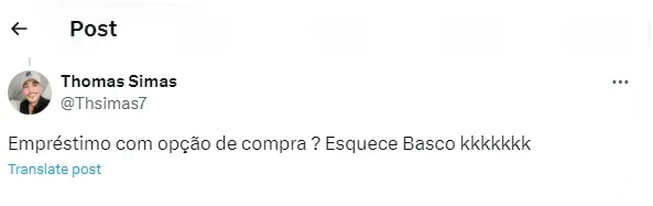 Sendo assim, a seguinte informação veio à tona. “Vasco recebeu a autorização da 777 Partners para oferecer entre € 3 milhões (R$ 16,3 mi) e € 3,5 milhões (R$ 19,1 mi) pelo volante. A proposta seria de empréstimo com opção de compra. O jogador tem interesse em se transferir para o Cruzmaltino”.