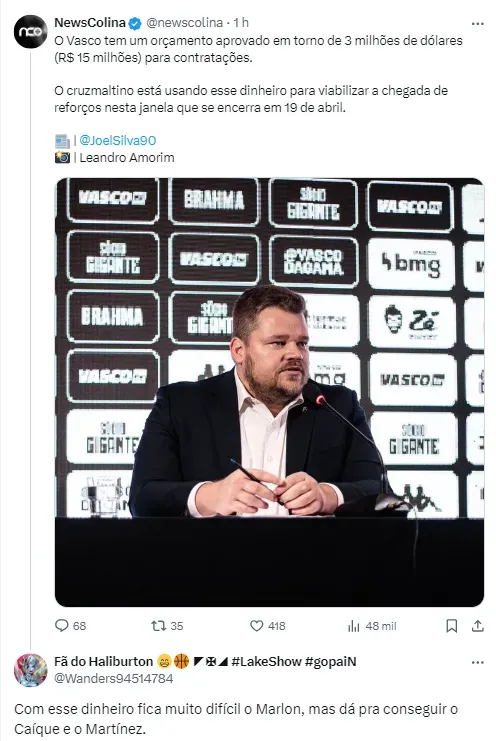 O Vasco da Gama está atento as oportunidades de mercado neste período de ‘brecha’ da CBF, que é válido até 19 de abril. A ideia vascaína é chegar para a disputa do Campeonato Brasileiro com novidades no elenco.
