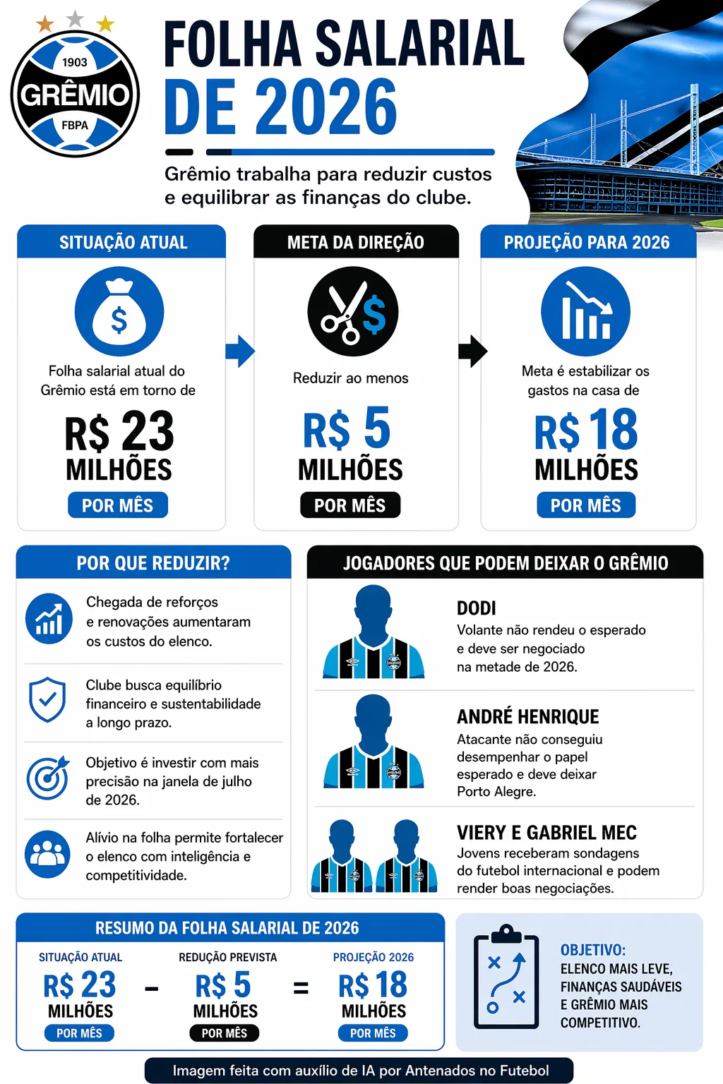O clube vive um momento em que precisa equilibrar desempenho esportivo com sustentabilidade financeira. Sendo assim, acreditamos que manter atletas que não estão rendendo só prejudicam o caixa e o futuro da equipe de Porto Alegre.