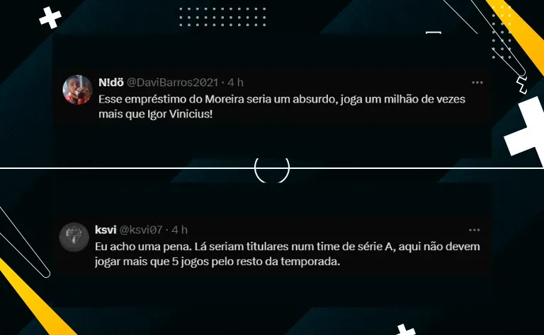 Já Moreira tem uma relação melhor com Carpini, mas decidiu ser paciente no Tricolor e brigar por posição com Igor Vinícius e Rafinha. Aliás, cabe ressaltar que o jogador também pode atuar pela esquerda, setor mais carente do clube.