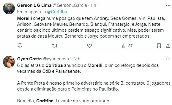 A adição de Morelli ao elenco do Coritiba é vista como um grande benefício, dadas as qualidades do jogador. No atual grupo do Coxa, alguns jogadores têm um estilo semelhante ao do novo contratado, como Vini Paulista, que foi muito elogiado no início da temporada. Portanto, a expectativa em torno de Morelli é alta.