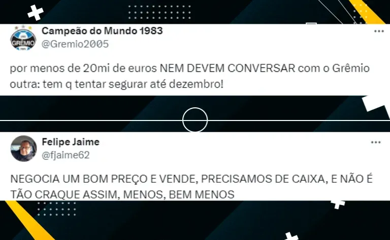 Muito valorizado, o atleta deverá receber propostas na ordem de 12 a 14 milhões de euros, com o Rei de Copas ficando com % de plus-valia. Vale ressaltar que o Tricolor Gaúcho detém 80% dos direitos econômicos do avante, que possui apenas 18 anos.
