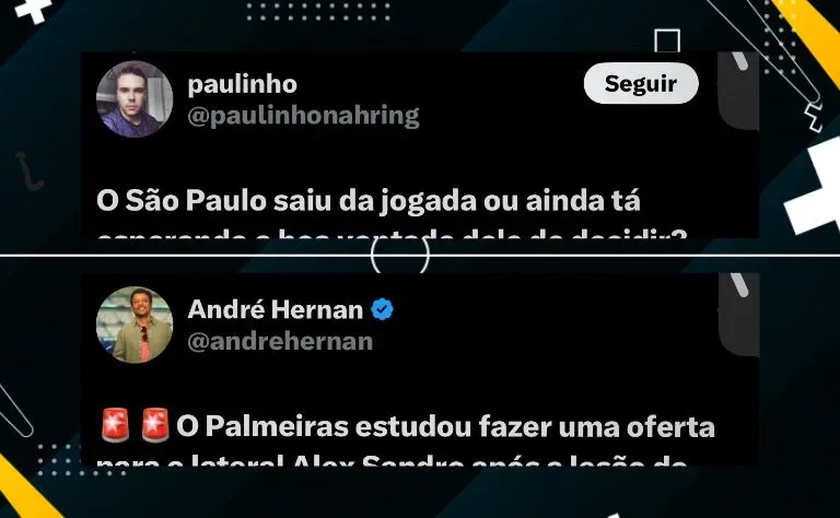 O São Paulo quase viu um de seus maiores rivais, o Palmeiras, tentar dar um ‘chapéu’ no mercado, ao tentar a contratação de Alex Sandro. A informação é do jornalista André Hernan.