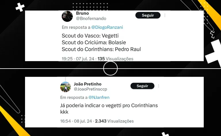 “O Corinthians precisava de um atacante tipo o Vegetti. Ele faz gol quando o time perde e quando o time ganha. Ele faz gol. O Corinthians foi buscar o Pedro Raul. Esquece. Não vai dar nada.”, avaliou durante o podcast Fim de Papo.