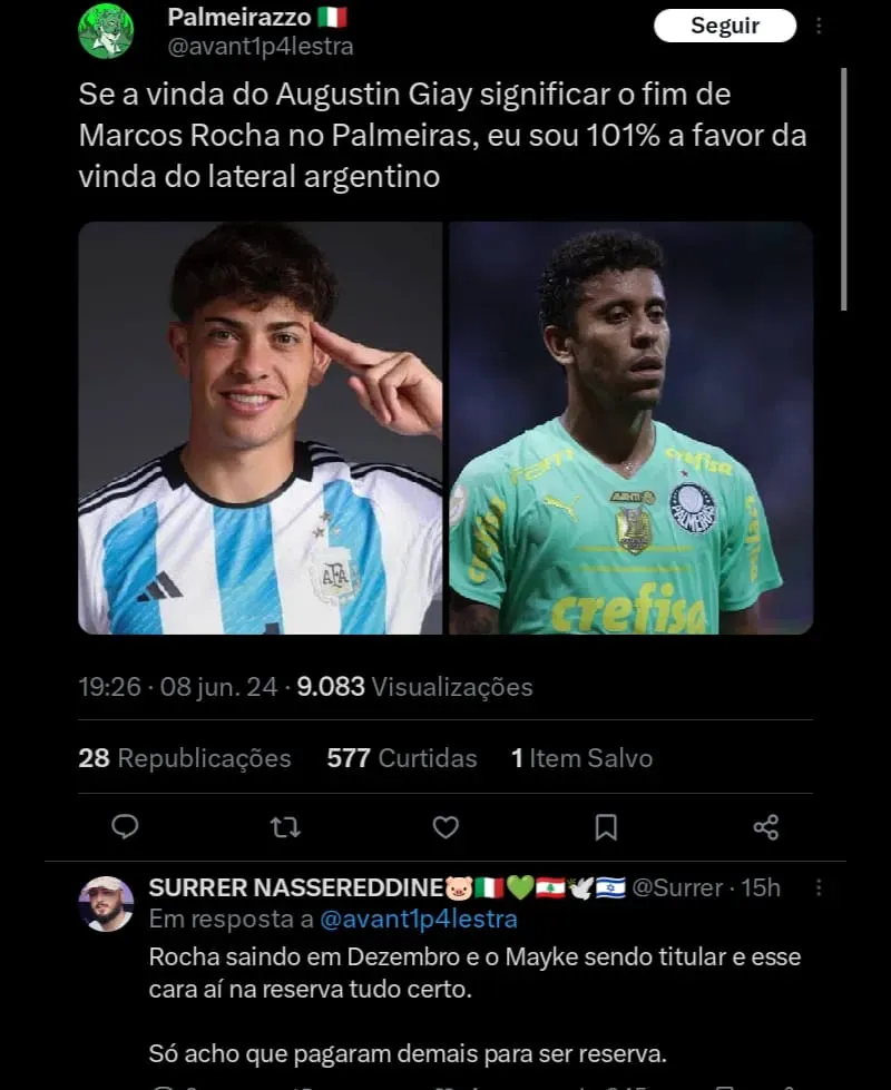 No entanto, o clube brasileiro enfrenta concorrência pesada da Europa: Atlético de Madrid e Benfica também estão interessados no jogador. Além de buscar agendar uma reunião com o estafe de Giay, o Alviverde também monta estratégias para evitar que o defensor feche com as equipes do Velho Continente.
