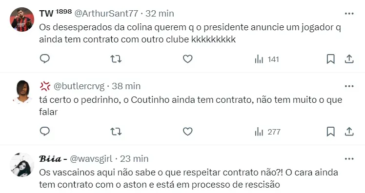 Apesar disso, o tema do momento no Clube é Philippe Coutinho. É de conhecimento geral que o Cruz-Maltino está tentando repatriar o jogador. Dessa forma, o presidente Pedrinho falou oficialmente sobre o assunto.