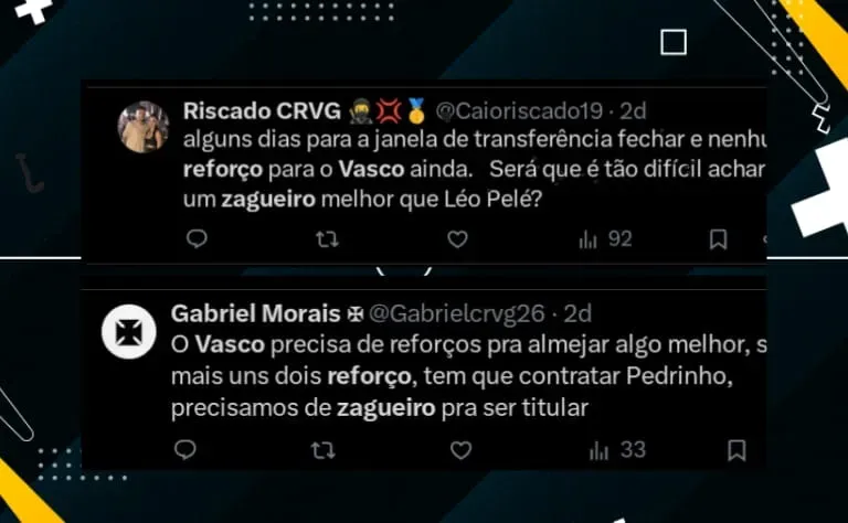 O Vasco da Gama ainda está em busca de reforços para o elenco de Rafael Paiva nesta janela de transferências. O time carioca tem até a próxima segunda (2) para isso, que é quando a janela se fecha.