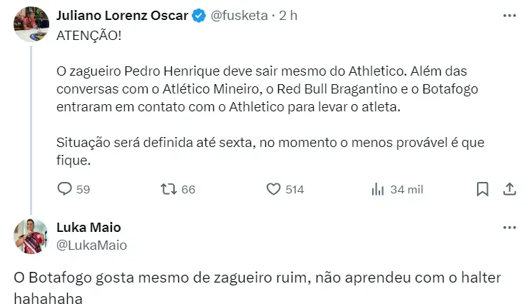 Mas outro assunto veio à tona nos bastidores: Pedro Henrique. O zagueiro foi sugerido ao Atlético Mineiro em uma possível troca com Jemerson. Porém, outros dois clubes do futebol brasileiro também se interessam por ele.