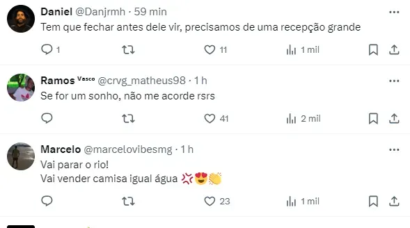 Neste momento, a tratativa está sendo conduzida por Pedrinho, presidente do Vasco. Atualmente, ele é responsável por administrar o departamento de futebol, devido a uma liminar da Justiça que tirou a 777 Partners do controle da SAF.