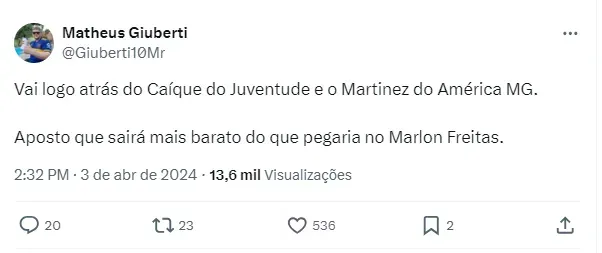 Leia mais: Nicola revela que Marlon Freitas quer deixar o Botafogo rumo ao Vasco