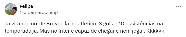 Mas outro assunto veio à tona nos bastidores: o mercado da bola. Nesta sexta-feira (12), o jornalista Lucas Collar trouxe a informação de que o Inter tem interesse na contratação de Shaylon, destaque do Atlético Goianiense.
