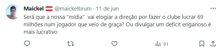 “Essa é uma meta orçamentária do ano. Nós temos outra janela ainda, no fim do ano. Então, não há nada que tenha que ser feito nesta janela e não na outra. Precisamos manter esse grupo da forma que projetamos no início do ano. Um grupo competitivo, com alternativas para o treinador poder trabalhar. Esse é o objetivo. O nosso planejamento também considera possíveis saídas com possíveis entradas”, iniciou o dirigente.