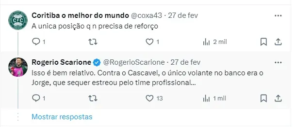 Vale lembrar que no início do ano, o Coritiba acertou a venda de Marcelino Moreno, um dos principais jogadores do time em 2023. Agora mira mais reforços para a sequência do ano.