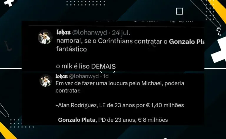O primeiro é Talles Magno, ex-Vasco e atualmente na MLS, que deve chegar por empréstimo de um ano ao Parque São Jorge. O segundo é Gonzalo Plata, que está no Al-Sadd da Arábia Saudita.