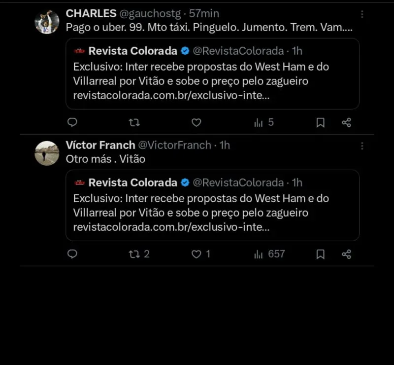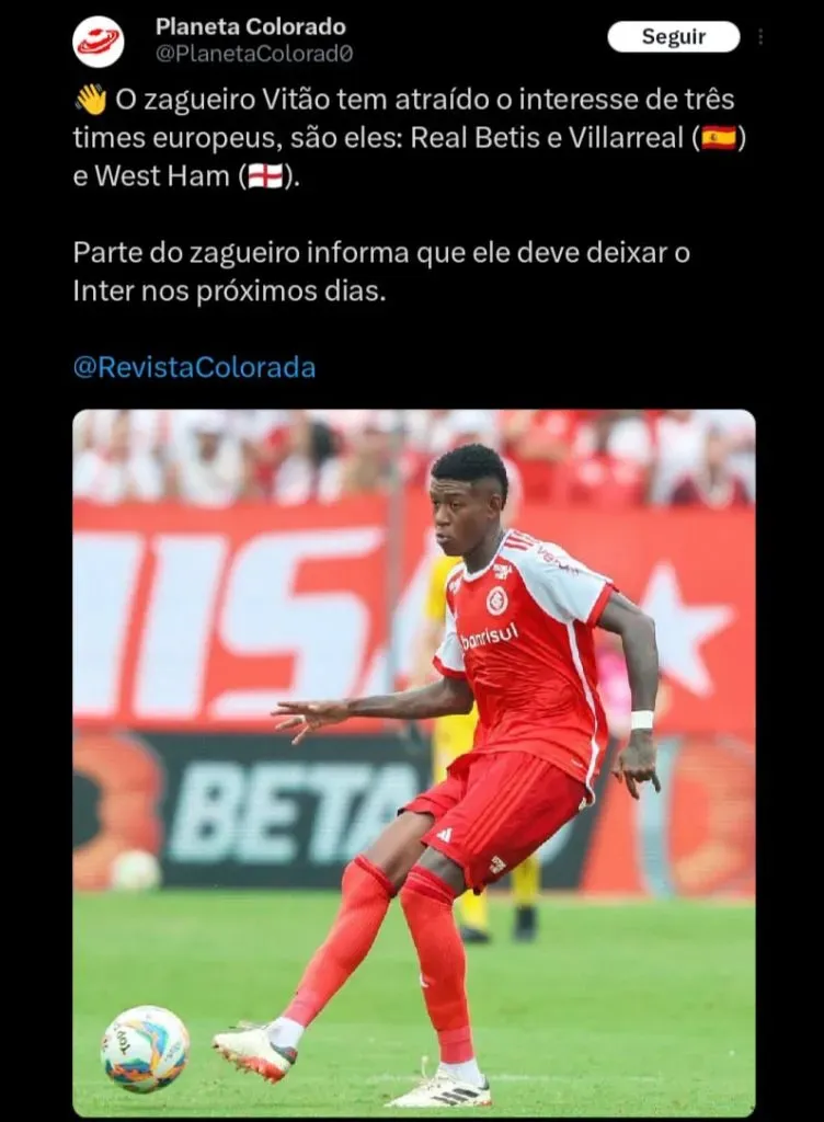 Com a alta procura, a Revista Colorada informou que o Internacional subiu a proposta pelo atleta. Para negociá-lo, a oferta terá que ser de no mínimo 12 milhões de euros, cerca de R$ 62,9 milhões. Além de Vitão, uma novidade sobre Lyanco chegou ao Colorado.