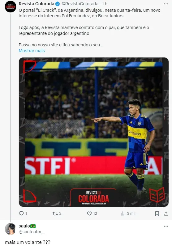 Vale lembrar que o jogador possui contrato válido com o Boca Juniors até dezembro de 2024. Portanto, a partir do meio do ano, pode assinar um pré-contrato com qualquer outro time e se transferir sem custos em 2025.
