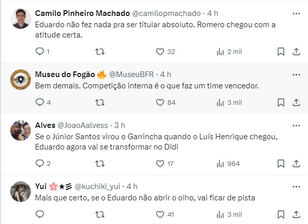 Além dele, o comandante do Alvinegro Carioca contou com o retorno de quatro titulares, John, Jeffinho, Luis Henrique e Savarino, porém ambos serão poupados contra o Boavista.