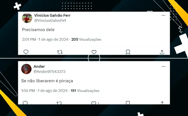 Outro jogador que também repercutiu na torcida foi Erick. Após muitos pedidos, o jovem voltou a ganhar minutos com Zubeldía e em seguida da vitória sobre o Goiás na Copa do Brasil, o assunto viralizou entre a torcida na web.