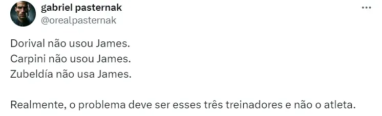 Apesar da situação envolvendo James, Zubeldía segue focado em seu trabalho e a torcida está muito confiante. Recentemente, Cicinho, ex-jogador e atual comentarista do SBT Sports, deu uma declaração ‘inusitada’ sobre o técnico.