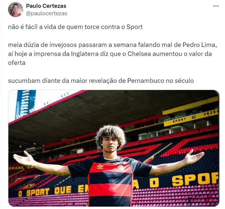 Apesar disso, outro assunto veio à tona nos bastidores: Pedro Lima. O atleta atrai interesse do Chelsea e existem chances dele deixar o time nordestino. Diante deste cenário, um gestor do Clube falou sobre o assunto.