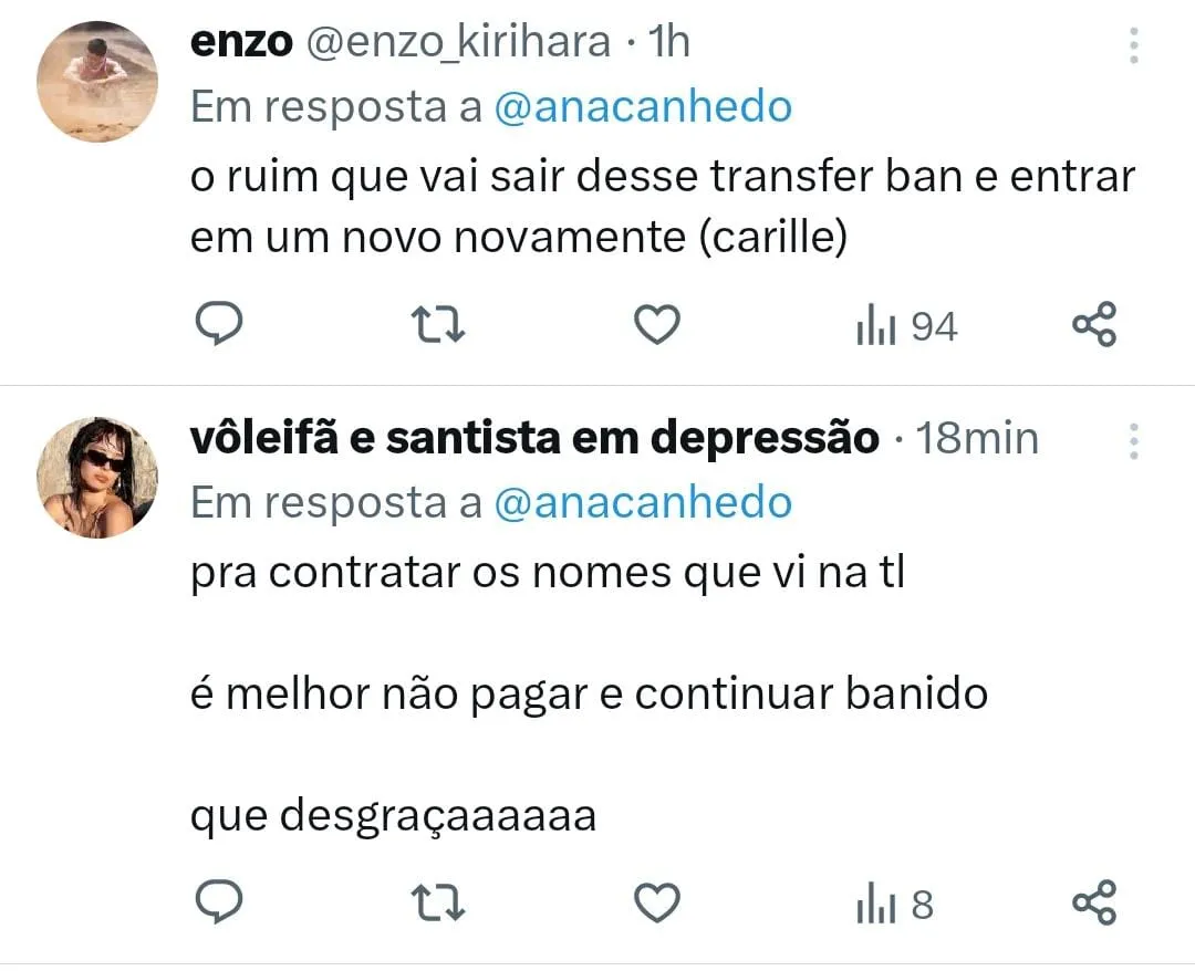 O Alvinegro Praiano sofreu mais um transfer ban devido a dívida com o Krasnodar, da Rússia, pela contratação do peruano Christian Cueva. O clube russo está cobrando cobram cerca de 4 milhões de dólares (cerca de R$ 20 milhões na cotação atual) da negociação que ocorreu em 2020, no fim da gestão do ex-presidente José Carlos Peres.