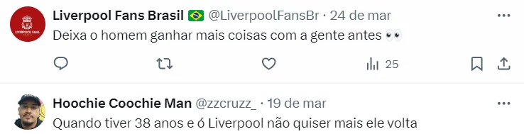 Mas outro assunto veio à tona nos bastidores: Alisson. De acordo com informações apuradas pelo jornal Inglês The Telegraph, uma equipe da Arábia Saudita (não revelada) analisa a situação do goleiro e pode apresentar uma proposta ao Liverpool na tentativa de contratá-lo.