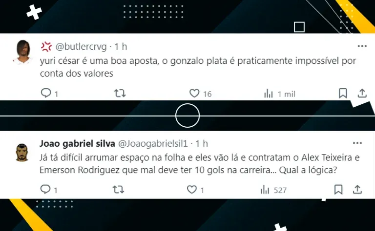 Além de Yuri, outro atacante está sendo sondado, mas os nomes ainda não foram revelados. Segundo André Hernan, o Vasco também demonstra interesse na contratação de Brian Rodríguez, do América do México.