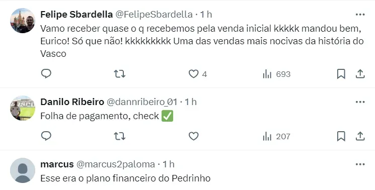 Segundo a fonte, o Vasco receberá exatos R$ 7,48 milhões pela negociação. A tendência é de que sua despedida aconteça justamente no duelo diante do Cruz-Maltino, na quinta-feira (13), pelo Campeonato Brasileiro.