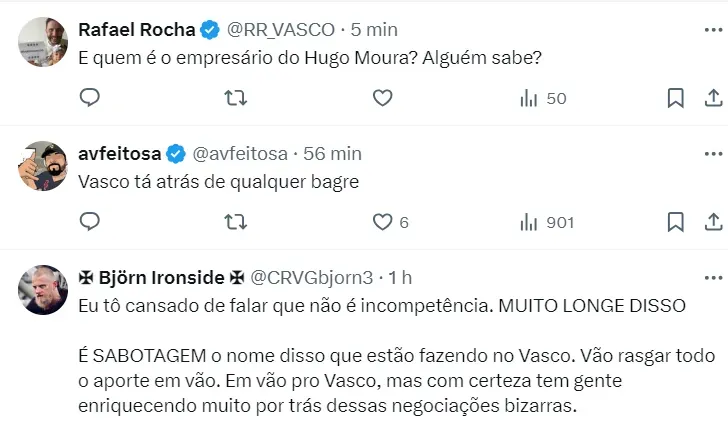 Dessa maneira, depois da negociação com Marlon Freitas, prioridade do clube para a posição não andar, o Vasco tem um novo alvo na mira. De acordo com o GE, o Cruzmaltino formalizou uma oferta para o Athletico-PR para contratar Hugo Moura.