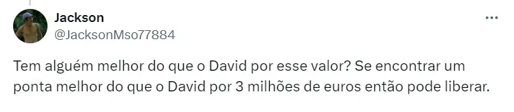 De acordo com informações apuradas pelo jornalista Venê Casagrande, especialista em mercado da bola no futebol brasileiro, o Vitória fez uma proposta de 3,5 milhões de euros (R$ 19,2 milhões) ao Internacional para contratar David, que está emprestado ao Vasco até o fim do ano.