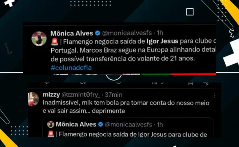 Segundo revelado pela comunicadora, o Rubro-Negro está sim planejando a saída de Igor Jesus nos bastidores. O volante deverá ir para um time de Portugal, cujo nome não foi revelado.