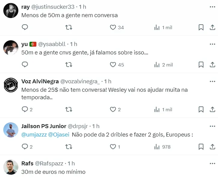 Entretanto, um gigante do futebol espanhol entrou na briga pelo ‘Cria do Terrão’. Segundo informações do portal Goal, o Atlético de Madrid tem interesse na contratação de Wesley. Com a janela fechada, a equipe espanhola deve seguir monitorando o atleta e uma oferta oficial pode chegar ao Corinthians em breve.