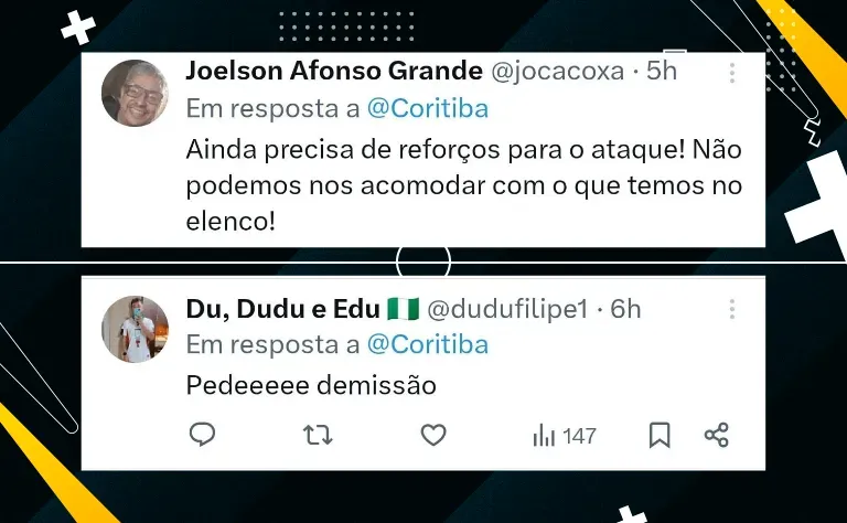 “Estamos satisfeitos com esses quatro atletas, que também escolheram o Coritiba, o que demonstra ser um clube organizado e estruturado no projeto esportivo, com profissionais de excelência. Por isso, a gente valoriza muito esses quatro atletas. Eles escolheram estar e vir para o Coritiba”, afirmou.