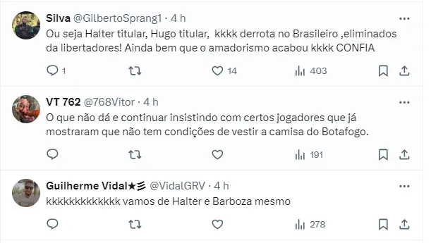Nas redes sociais, os torcedores do Alvinegro Carioca criticaram severamente o desempenho da equipe, que permitiu a virada e sofreu o gol decisivo no final, resultando na derrota. Além disso, a expulsão do zagueiro Alexander Barboza durante o jogo gerou grande controvérsia online.