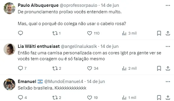 Vale recordar que logo após a declaração do defensor de 22 anos que foi convocado para a Copa América, a entidade emitiu um comunicado à imprensa. Veja ele na íntegra a seguir: “A CBF reafirma seu compromisso com a liberdade, a pluralidade, o direito à auto expressão e livre construção da personalidade de cada indivíduo que trabalhe na entidade ou defenda a Seleção Brasileira. Para a entidade, o desempenho do colaborador fala por si só.