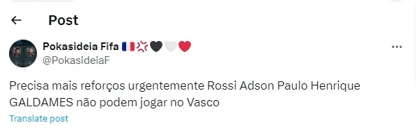 “Quando eu lembro que o Vasco pagou R$ 30 milhões por esse cara eu fico maluco da cabeça, que absurdo!”. “Ele não tem força nem para cruzar uma bola, péssima contratação de Anderson Mattos”. “Esse é bagre, não serve nem para ser reserva”.
