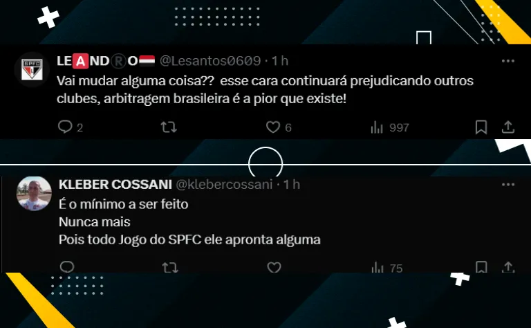 Além das de ontuar as falhas na partida, o Clube deve pedir para a entidade que o árbitro não apite mais jogos do São Paulo. A informação foi divulgada pelo jornalista André Hernan. O presidente, Julio Casares, que esteve com a delegação do Brasil na Copa América, deve levar o ofício até a CBF.