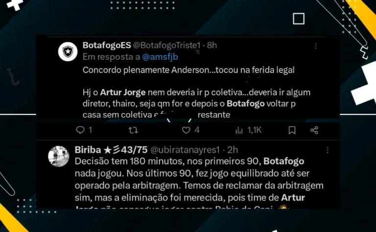 O treinador não parou por aí e reafirmou que o Glorioso merece respeito: “Nós, Botafogo, não sou eu como treinador, o Botafogo não merece isso, merece respeito. Viemos jogar uma eliminatória com toda coragem, respeito e dedicação dos jogadores e é isso que nós temos que tirar dessa situação”, iniciou.