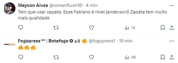 “É importante ter os atletas preparados mentalmente para os desafios. Vamos competir para ganhar. É uma ideia que vocês sempre terão enquanto eu estiver aqui. O objetivo é fazer com que esse Botafogo também seja temido. Vai ter momentos que não vamos conseguir ganhar, óbvio, mas não podemos abandonar esse princípio. Temos que ser uma equipe que pelo menos lute pela vitória em todos os jogos”.
