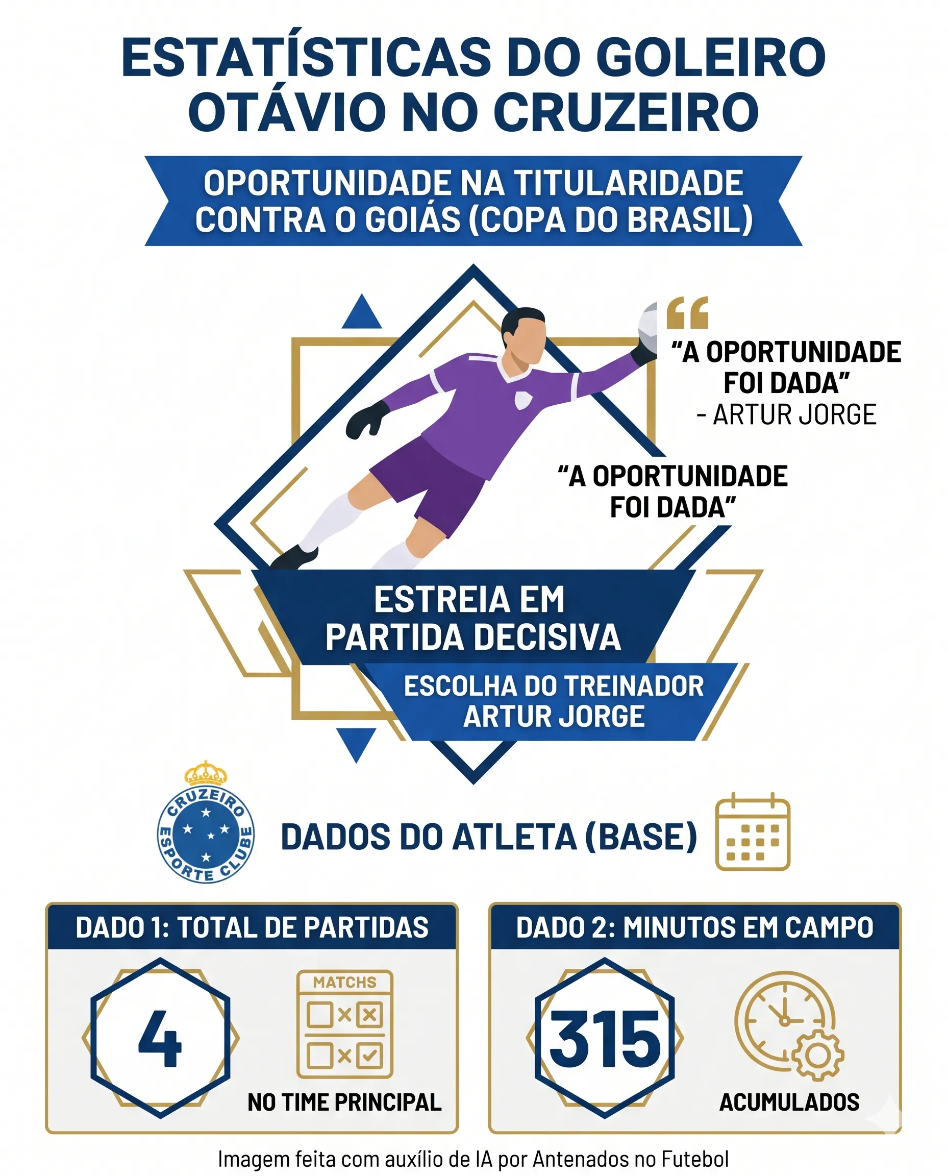 Otávio tem 20 anos e possui contrato com o Cruzeiro até o fim de 2028. Formado nas categorias de base, o goleiro já recebeu algumas oportunidades no time principal, totalizando quatro partidas, com 315 minutos em campo.