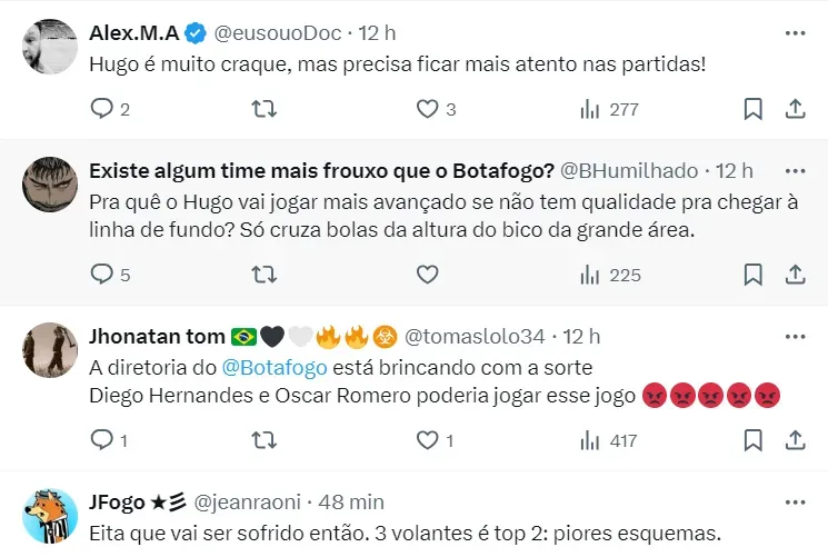 Reação da torcida sobre a escalação