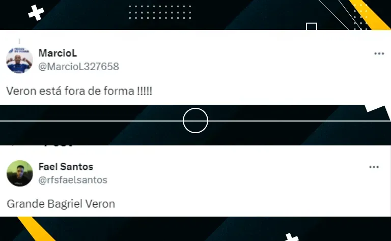 Todavia, mesmo após anotar o terceiro ‘tento’ da Raposa, Veron voltou a virar ‘alvo’ de alguns torcedores do time mineiro. Sendo assim, os seguintes comentários contra o ex-Palmeiras estão bombando nas redes sociais (SIC).