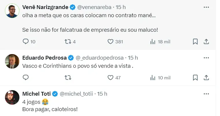 Falando em Vasco, o Furacão tomou uma atitude em relação ao clube carioca. De acordo com o ge, o Athletico notificou o Cruzmaltino por atraso na parcela do empréstimo do volante Hugo Moura e ainda sequer recebeu uma resposta do lado vascaíno.