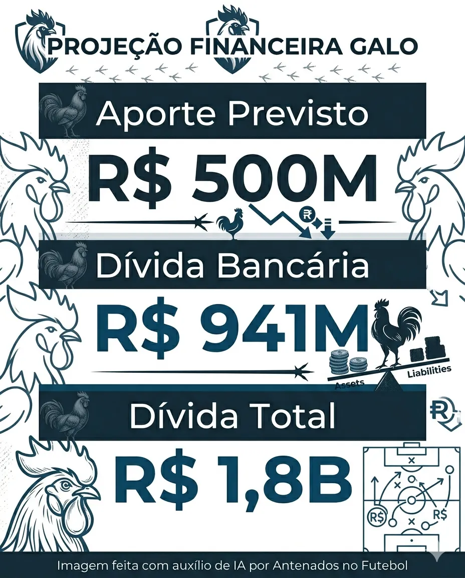 O aporte de R$ 500 milhões tem como objetivo a quitação de dívidas bancárias do Atlético. O clube definiu como prioridade a recuperação de credibilidade no mercado — e isso passa pelo fim da inadimplência do Galo.