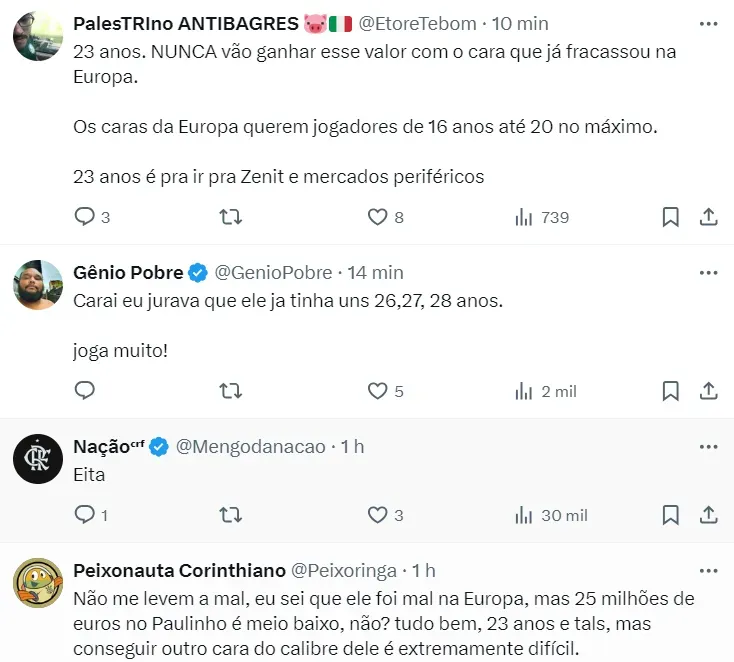 Desde que o jogador chegou ao Alvinegro, o clube já recebeu sondagens de equipes das cinco maiores ligas da Europa e ainda da MLS. Contudo, vale ressaltar que até o momento não passa disso, ou seja, ainda não chegou nenhuma oferta oficial.
