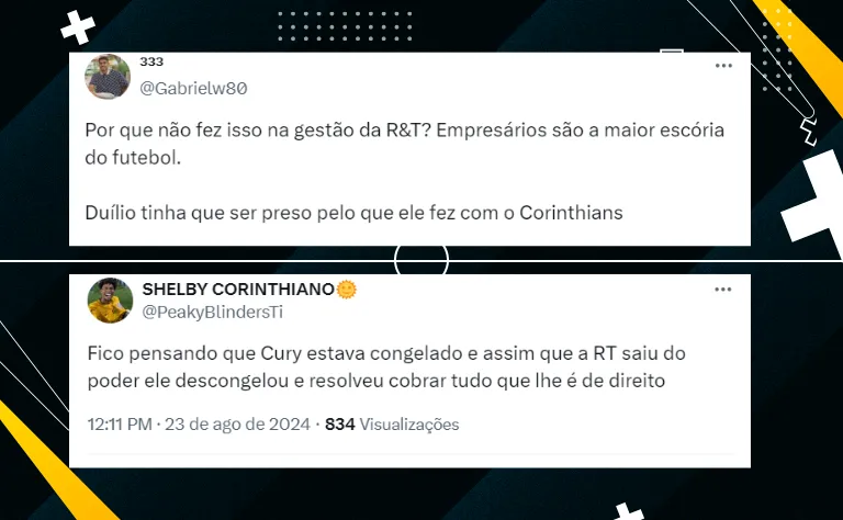 Vale lembrar que, na semana passada, André Cury já havia bloqueado R$ 9,7 milhões do Timão, agora, o valor total é de R$ 14, 8 milhões. O empresário cobra mais de R$ 30 milhões do Corinthians em cinco processos.