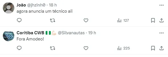 No entanto, apesar das palavras do diretor técnico, as críticas do grupo denominado Coletivo Coritibano não param. Ele é composto por influencers, torcidas organizadas e ex-dirigentes do Coritiba, seguem protestando nas redes sociais sempre escolhendo um alvo.