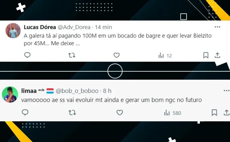 Na rede social, a repercussão foi grande, o clube percebeu e apagou a publicação. Biel tem contrato com o Bahia até o fim de 2028, mas pode estar perto de ampliar para proteger de possíveis investidas de outros clubes.